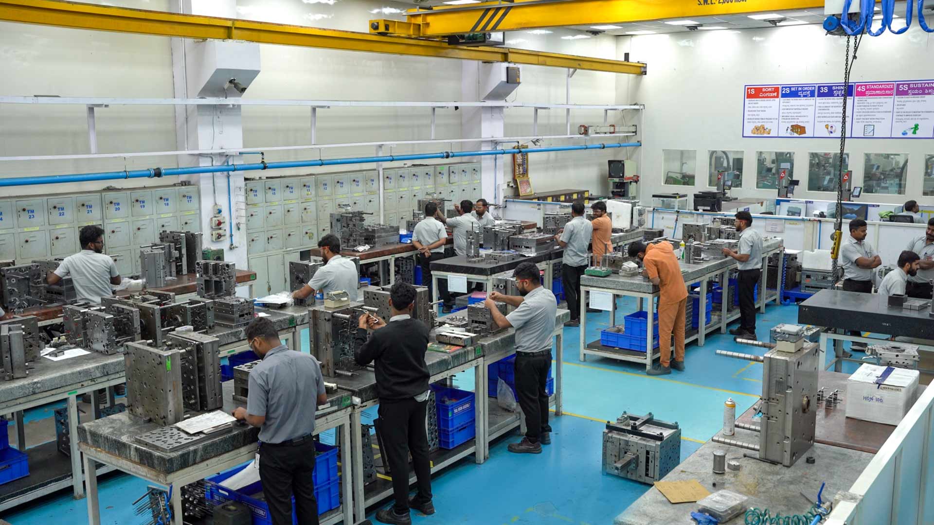 An in-house tool room and assembly line streamline production by providing custom tools and efficient assembly processes within the facility, enhancing precision, reducing lead times, and improving overall operational efficiency.